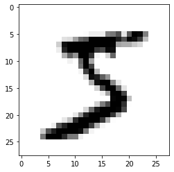 x_train 학습용 데이터 중 첫번째(0) 이미지가 어떻게 생겼는지 시각화 확인 (matplotlib 이용)