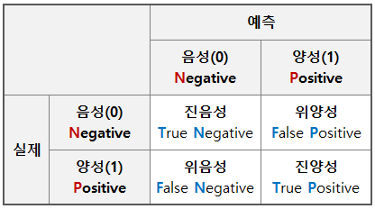 * Recall : TP / (FN + TP) → 1인 경우를 잘 찾는 지표로 사용