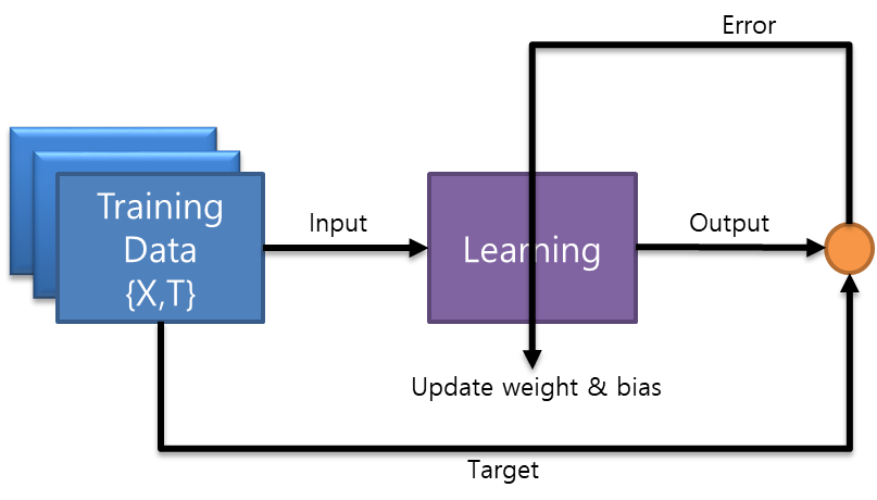 4. Repeat 2~3 until error becomes network goal : 목표 달성까지 계속 반복함