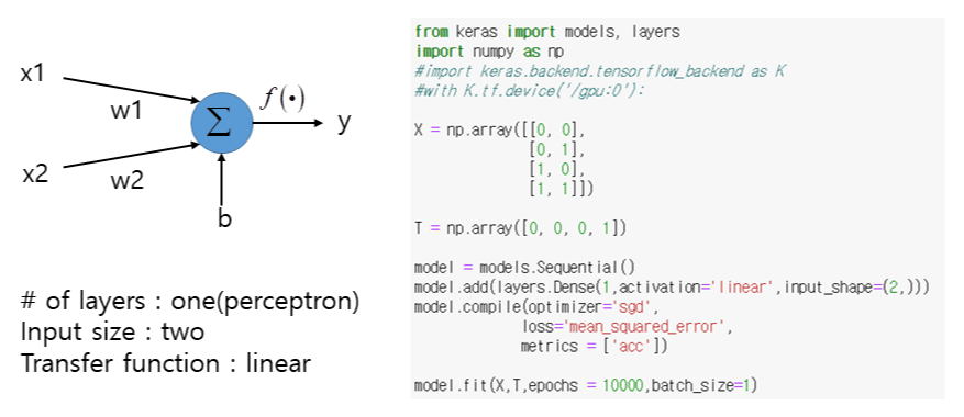model.add(layers.Dense(units = 4, activation = 'sigmoid', input_shape = (2,))) # 중간층