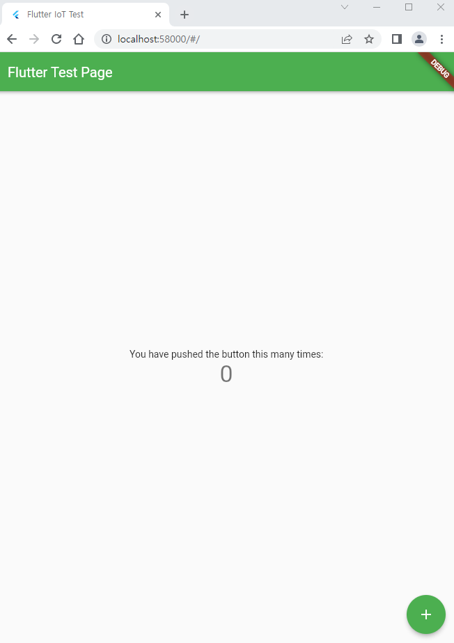 위 코드를 안드로이드 스튜디오에서 'run'하면 크롬 브라우저가 자동으로 띄워 지면서 아래와 같은 페이지를 볼 수가 있게 된다. 아래 그림의 오른쪽 아래에 동그라미를 계속 누르면 중간에 숫자가 카운트되면서 올라간다. 위 코드에서 간단히 제목을 변경하고 색깔도 변경할 수가 있다.